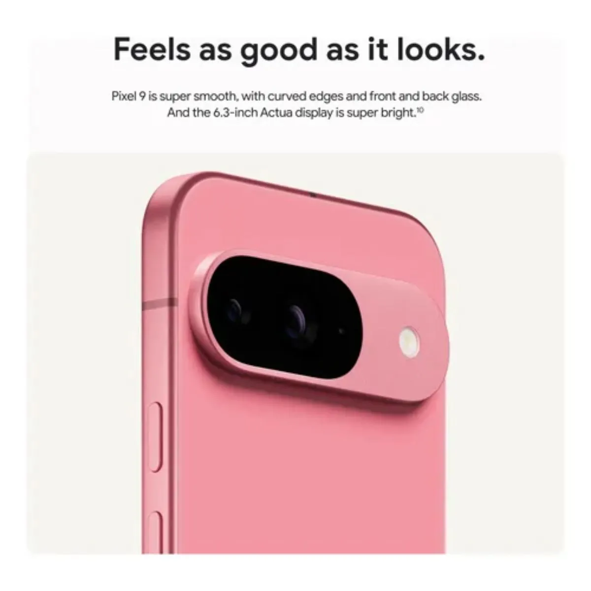 El Google Pixel 9 es un smartphone diseñado por Google con pantalla OLED de 6,3 " (1080×2424, tasa de refresco 60–120 Hz, brillo pico de hasta 2 700 nits)