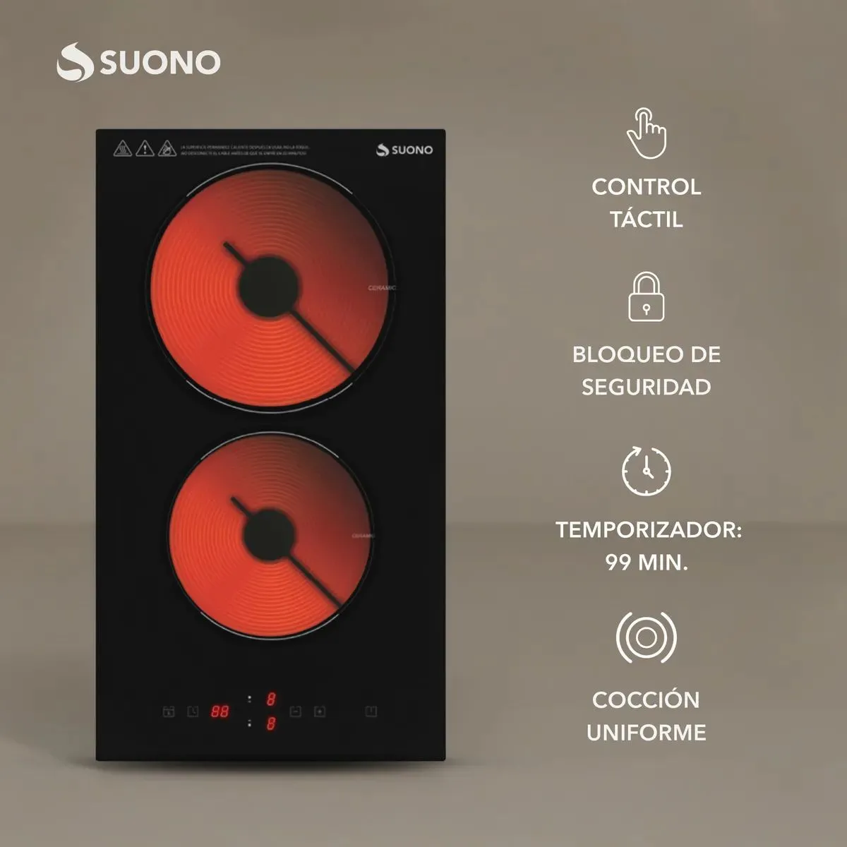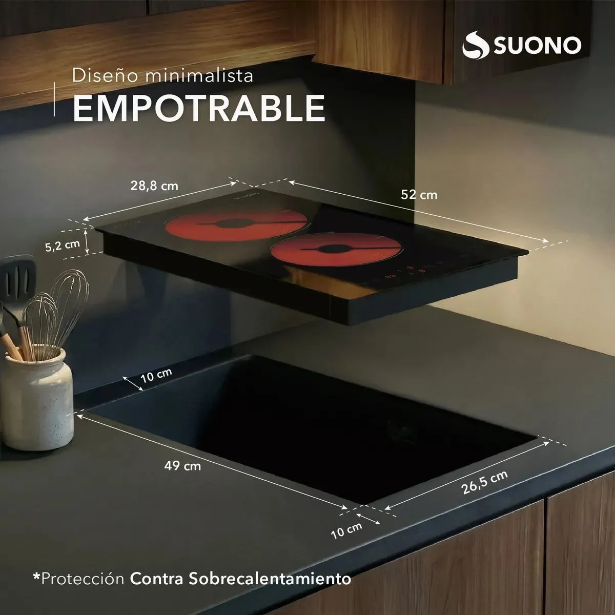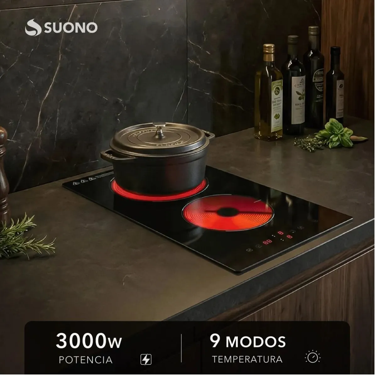 Anafe Vitrocerámico Eléctrico Empotrable 2 Hornallas 3000W Modernizá tu cocina con un anafe eléctrico empotrable que combina diseño, potencia y seguridad. Con 3000W de potencia total y sistema infrarrojo, calienta rápido y distribuye el calor de forma uniforme para resultados perfectos todos los días. Cociná dos preparaciones al mismo tiempo con controles independientes y regulación precisa. Características principales: -Sistema infrarrojo con 2 zonas de cocción: Calor uniforme y eficiente. -Potencia total de 3000W: Alto rendimiento para el uso diario. -Control táctil con pantalla LED: Manejo moderno e intuitivo. -9 niveles de potencia: Ajuste preciso según cada receta. -Temporizador de hasta 99 minutos. -Superficie de vidrio cristal negro pulido: Elegante, resistente y fácil de limpiar. -Indicador de calor residual: Mayor seguridad durante el uso. -Protección contra sobrecalentamiento y apagado automático. -Traba de seguridad: Ideal para hogares con niños. -Encendido electrónico. -Uso 100% eléctrico Cociná dos platos al mismo tiempo con controles independientes. Mayor ahorro energético frente a sistemas tradicionales. Diseño empotrable que aporta estética y orden a la cocina. Fácil limpieza gracias a su superficie plana. Ideal para departamentos y cocinas modernas. Medidas: -Tamaño del producto: 28.8 × 52 × 5 cm -Medidas de empotre: 27 × 49.5 cm Especificaciones físicas: -Peso del producto: 3.983 kg -Peso con caja: 4.718 kg -Dimensiones de la caja: 36.7 × 11 × 62.5 cm