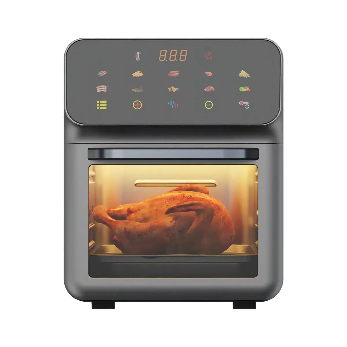 Características principales: Capacidad: 10 litros, ideal para familias y reuniones Potencia: 1500W para un cocinado rápido y uniforme Control de temperatura: ajustable hasta 200 °C 10 programas automáticos para diferentes tipos de comidas Circulación de aire caliente 360° para una cocción homogénea Sistema de apagado automático al retirar el canasto Mango resistente al calor: mayor seguridad y comodidad Dimensiones del producto: Externas (Ancho x Largo x Alto): 27 cm x 28 cm x 35 cm Internas (Ancho x Largo x Alto): 23 cm x 23 cm x 19 cm Incluye 2 bandejas de 22,5 cm x 20,5 cm Beneficios: Cociná sin aceite, comidas más saludables y sabrosas Mayor capacidad para preparar varias porciones al mismo tiempo Fácil de usar con funciones preestablecidas Diseño digital y moderno Seguridad garantizada con apagado automático