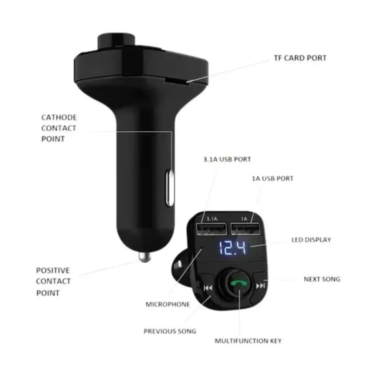 Transforma tu auto con el Adaptador Multifuncional Inalámbrico X8 ¿Quieres viajar con comodidad, seguridad y entretenimiento ilimitado? El Adaptador de Auto X8 es el accesorio ideal para modernizar tu vehículo y llevar tu experiencia de manejo al siguiente nivel. ¿Por qué deberías comprarlo? - Música sin límites: Disfruta de tus canciones favoritas desde tu teléfono, memoria USB o cualquier dispositivo Bluetooth y transmítelas directamente a tu estéreo a través de FM. - Llamadas manos libres: Conéctate fácilmente vía Bluetooth y realiza llamadas seguras sin soltar el volante. ¡Mantén el control y evita distracciones! - Carga rápida y eficiente: Gracias a sus 2 puertos USB (2.1A y 1.0A), puedes cargar tu teléfono, tablet o cualquier dispositivo al mismo tiempo, sin preocuparte por quedarte sin batería en el camino. - Controles intuitivos: Cambia canciones, ajusta el volumen o responde llamadas con facilidad, todo con un solo dispositivo compacto y moderno. Beneficios que no te puedes perder: - Seguridad garantizada: Atiende llamadas sin quitar la vista del camino. - Comodidad total: Conéctalo en segundos y disfruta de todas sus funciones. - Compatibilidad universal: Funciona en cualquier auto y con cualquier dispositivo Bluetooth. - Estilo moderno: Diseño elegante y pantalla LED para una experiencia premium.